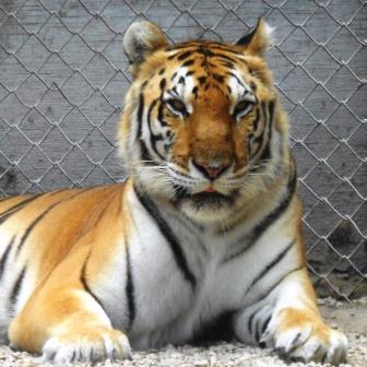 Honey was born in a litter with two brothers, Hontohan and Cistila, in 2002. As is common in tiger cubs at an early age, they romp and play continuously, to strengthen their reflexes, muscles and hunting skills. Since the girls are equal in size at that age and usually precocious and a bit more mature, they can tend to beat up on their brothers. Such was the case with our little Honey (also known as Honey Bear). She could be brutal when she beat up on her brothers at that time. Honey has since mellowed–but only a little bit. She can be remarkably gentle and accomodating with her handlers, but it’s easy to see how she could become quite the ball of energy. That’s our little Honey Bear.